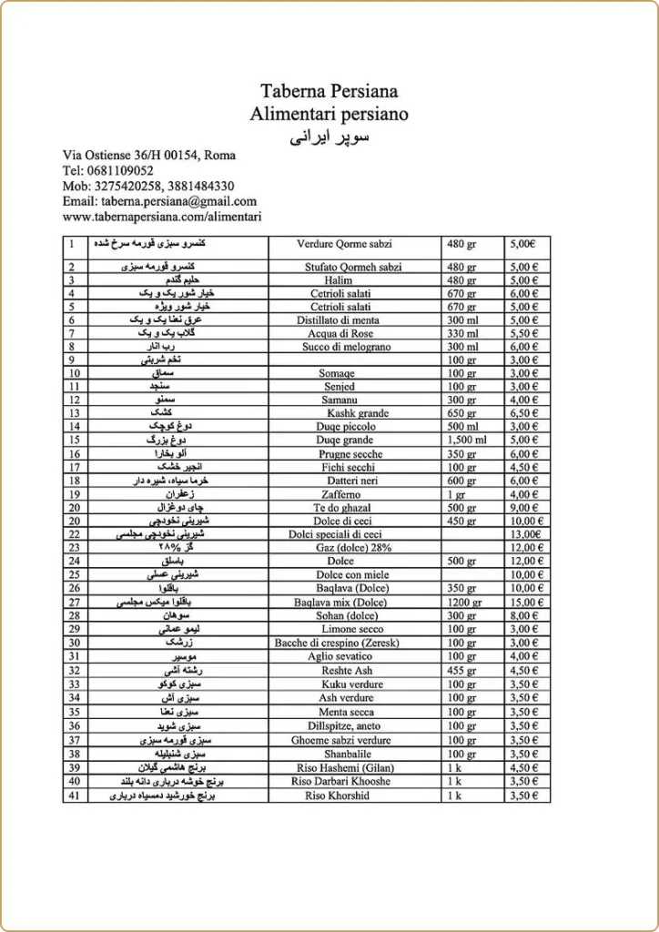 Alimentari Persiani, prodotti alimentari autentici iraniani